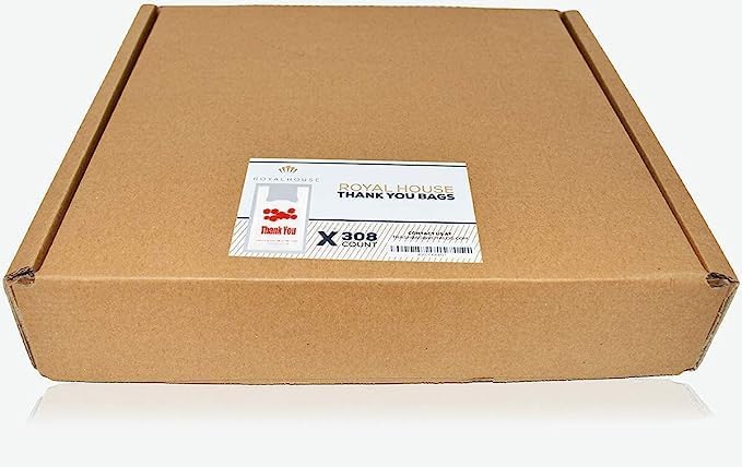Royal House Thank You T-Shirt Bags, (308 Count in Case) Plastic Grocery Shopping Bags, Delivery Bag, Reusable and Disposable Supermarket Bag (Pack of 4)