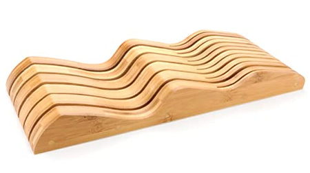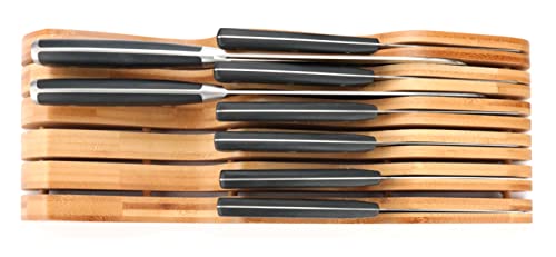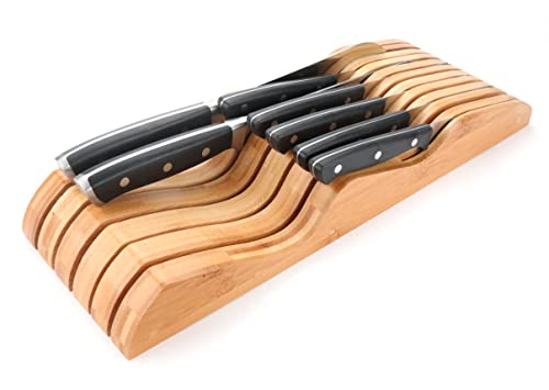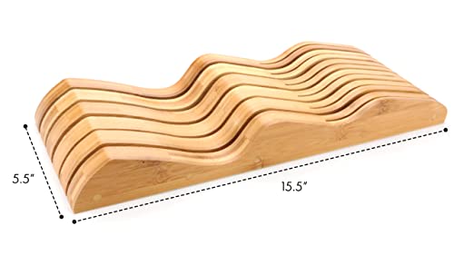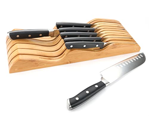 Bamboo Knife Block Holder, 11 Knives Dock, In-Drawer Knife Drawer Organizer