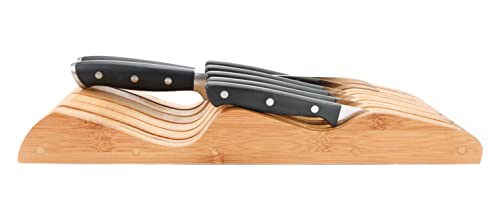 - FITS MOST STANDARD DRAWERS – say goodbye to knives shooting out of your drawer or jamming it. This in-drawer knife holder will fit effortlessly into your drawer and organize a wide range of knives