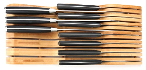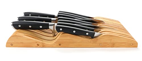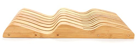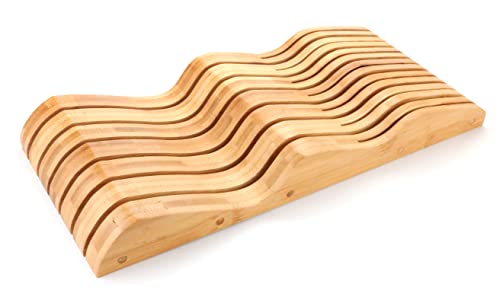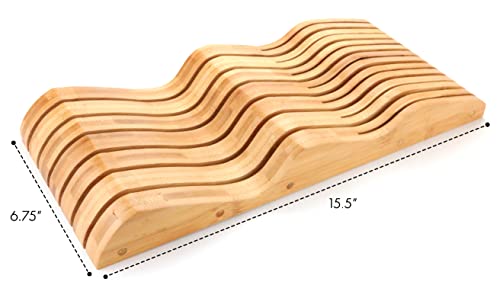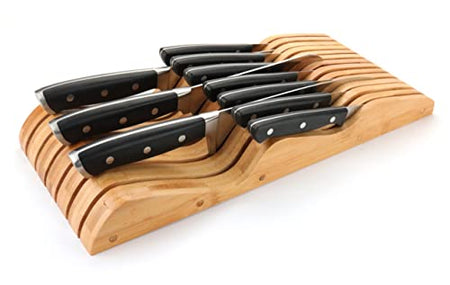 - FITS MOST STANDARD DRAWERS – say goodbye to knives shooting out of your drawer or jamming it. This in-drawer knife holder will fit effortlessly into your drawer and organize a wide range of knives