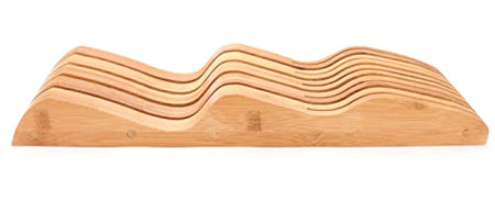 Details: DURABLE BAMBOO MATERIAL – we use high-grade and sustainable hardwood to design our knife blocks. The organizer for home and chefs safely stores steak knives, knife sharpeners, butcher knives – you name it! FITS MOST STANDARD DRAWERS – say goodbye to knives shooting out of your drawer or jamming it. This in-drawer knife holder will fit effortlessly into your drawer and organize a wide range of knives. PREMIUM QUALITY – our bamboo knife block is odor-resistant, wear-resistant, heat-resistant, and stain-resistant. It makes retrieving your knives as easy as you see the chefs on cooking shows do. EASY TO CLEAN – to ensure your knife drawer organizer is ready to store more cutlery, hand-wash it with a cloth and soapy water, and dry using a clean cloth. Kindly remember to clean the knife block after every use. WORTHY PURCHASE – our eco-friendly kitchen accessory is designed to tidy up your kitchen and store knives without hassle. Please get in touch in case of any concerns and we will promptly solve the issue.