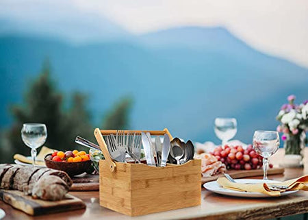 - Attractive Design: This cutlery caddy holder is an elegant addition to the counter or tabletop. Contains 4 useful compartments and a carry handle.
